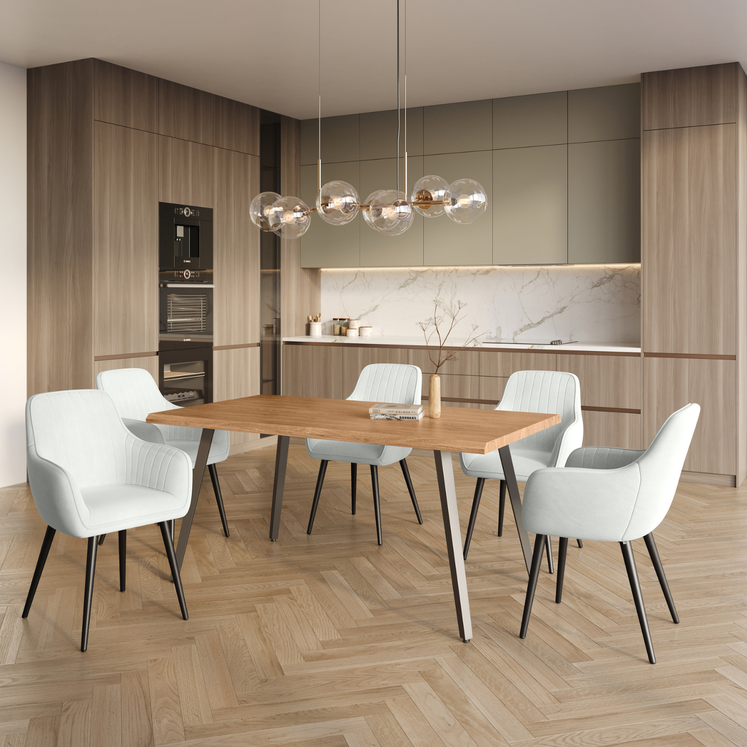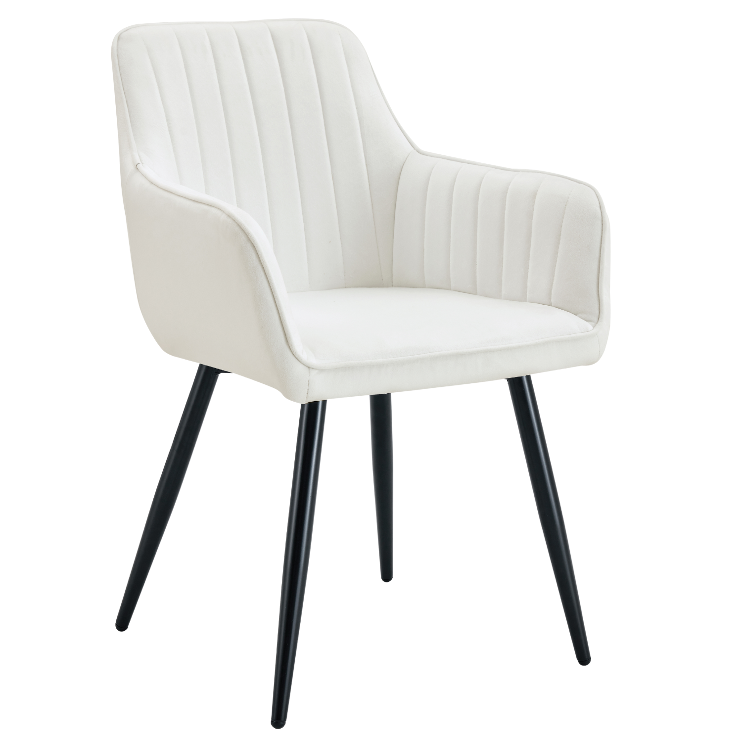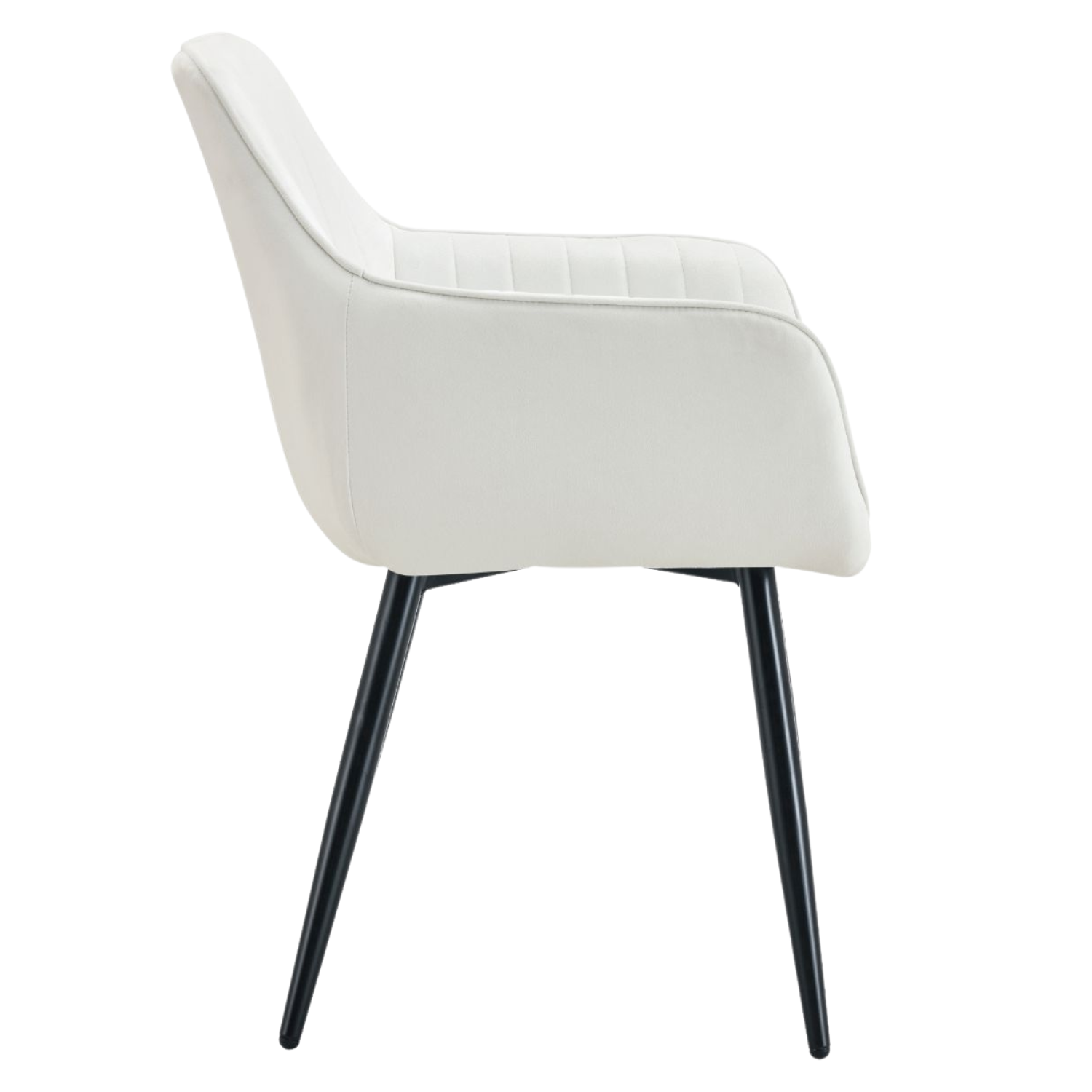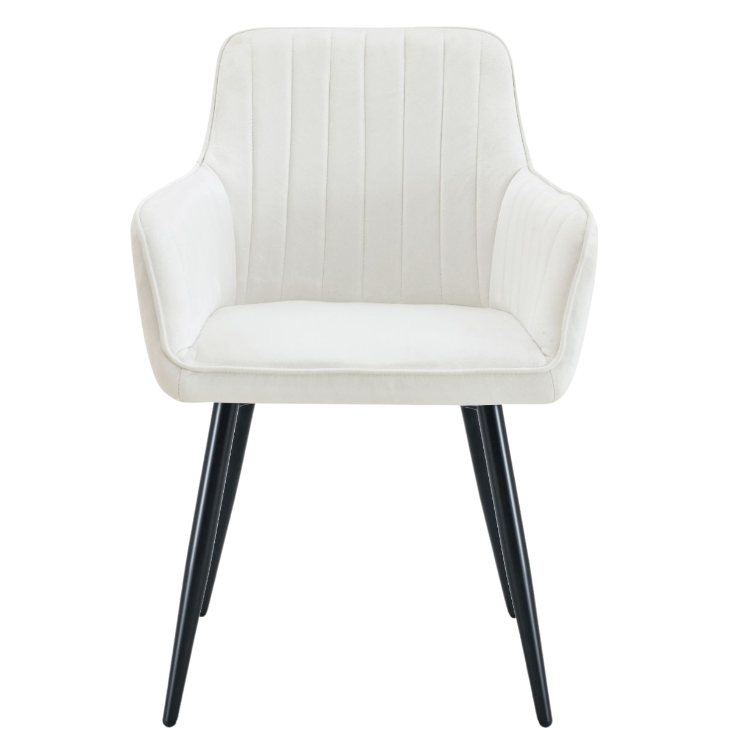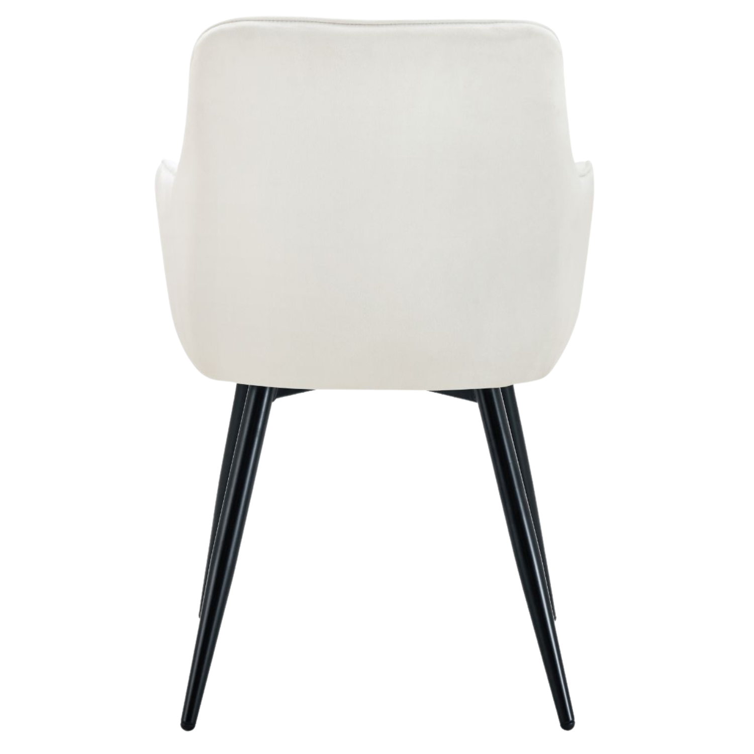 Derived from the Latin "Cassius," symbolizing nobility, the Cassian Dining Chair exudes regal simplicity. The white velvet upholstery and sleek black legs offer a balance of elegance and modernity.