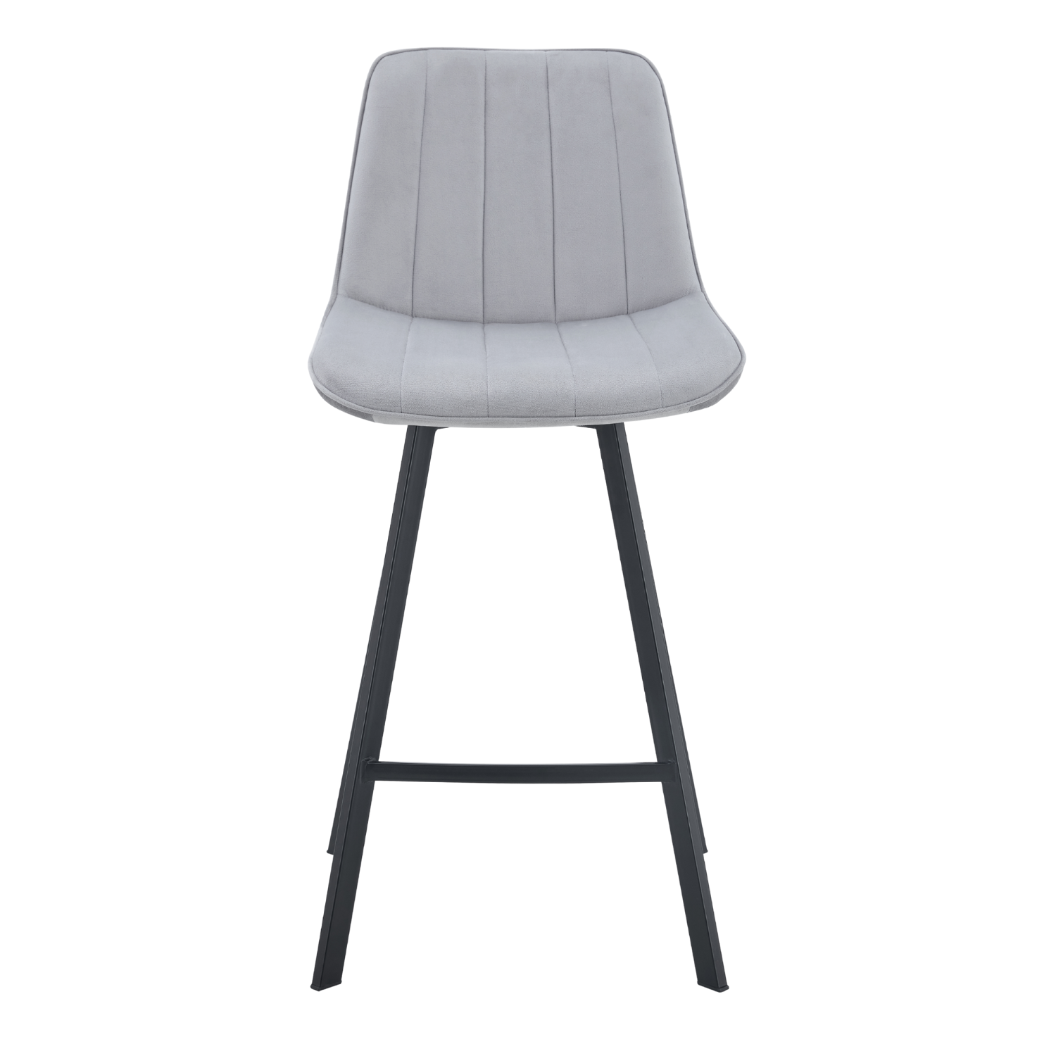 Soft texture meets confident lines. The Livia Counter Stool features a plush, channel-stitched seat wrapped in cool grey velvet, supported by slim black metal legs for a clean, grounded profile.
