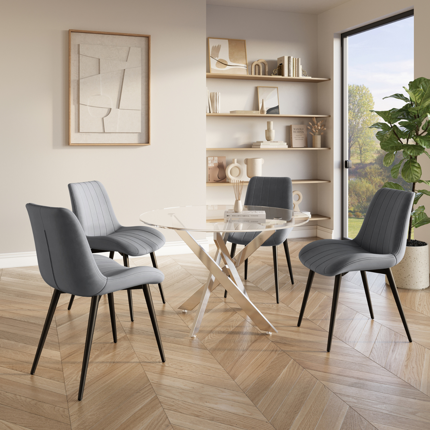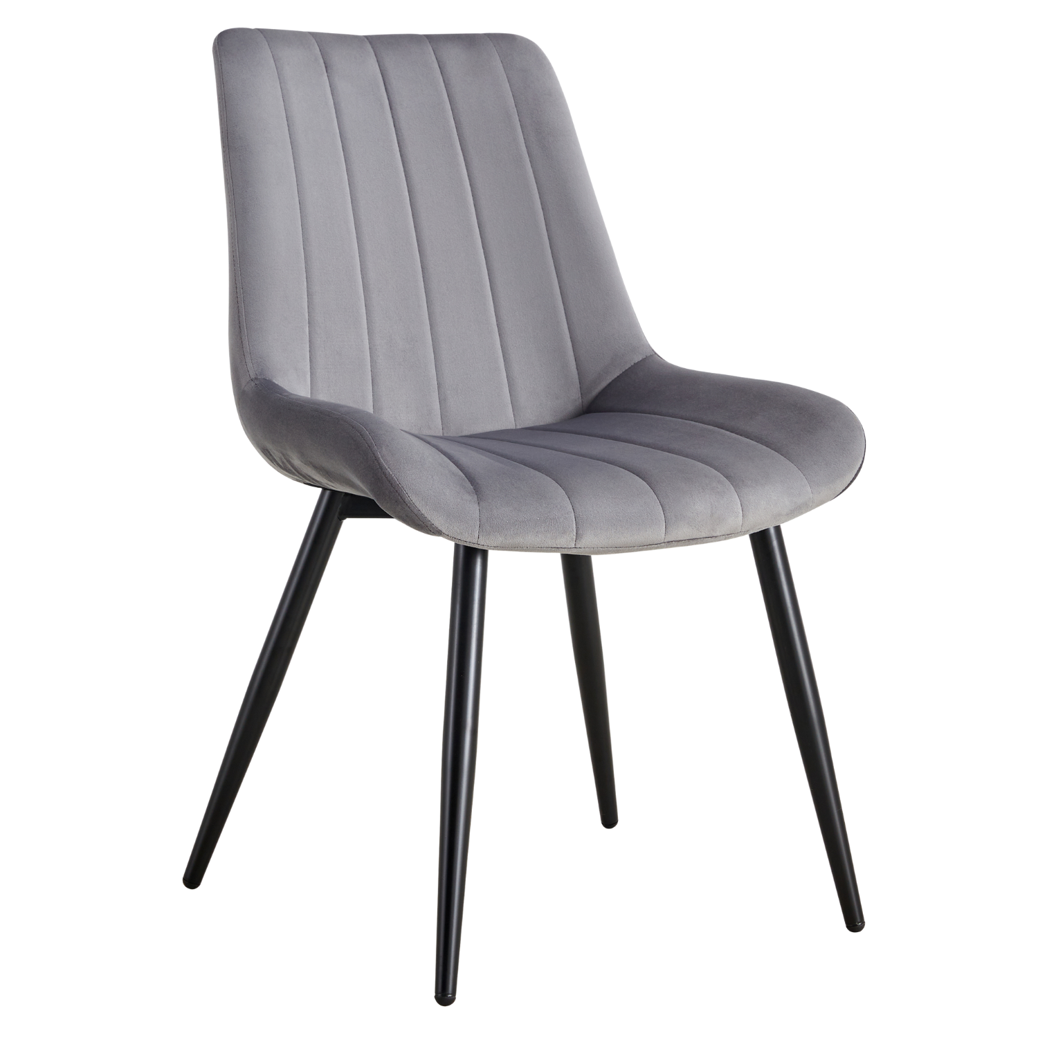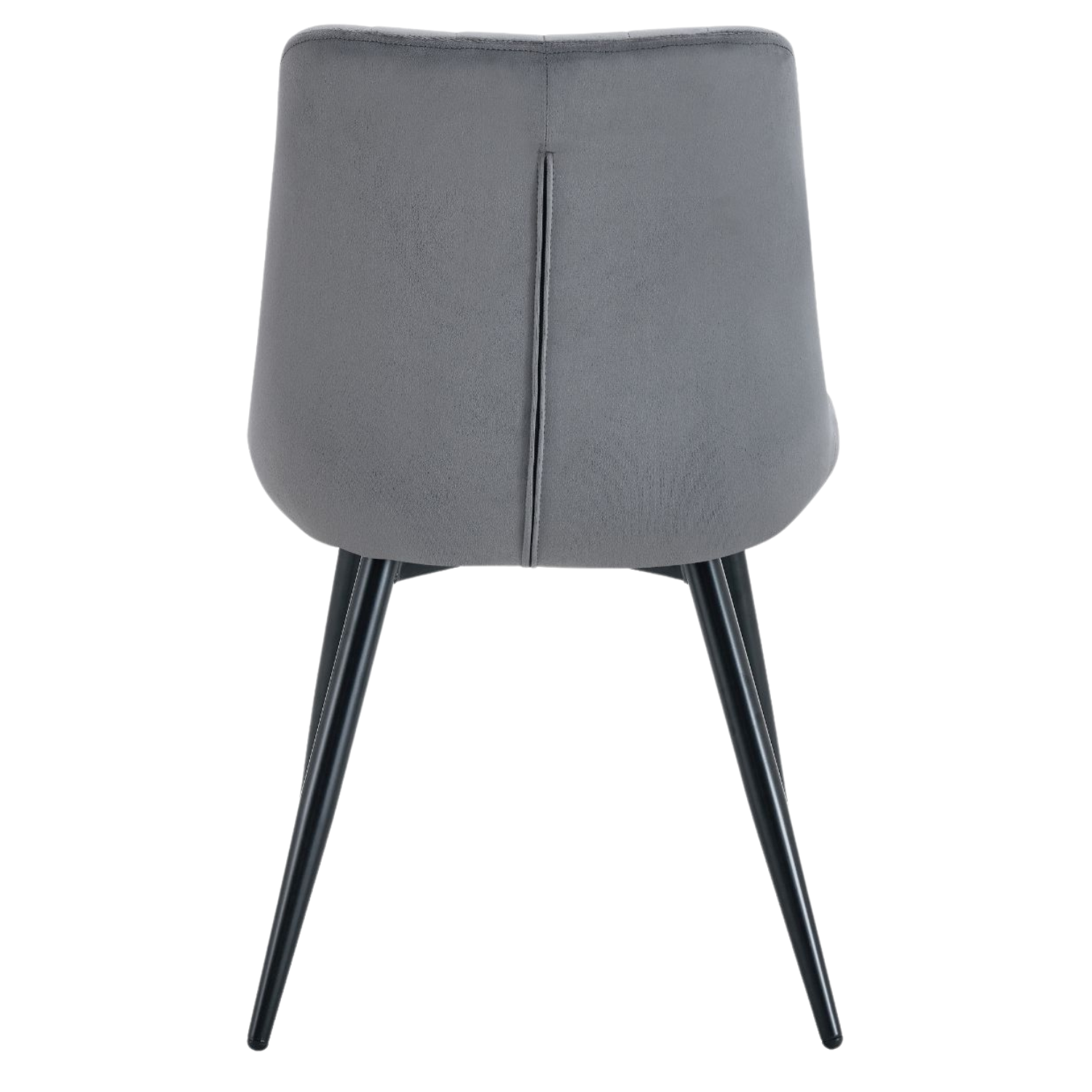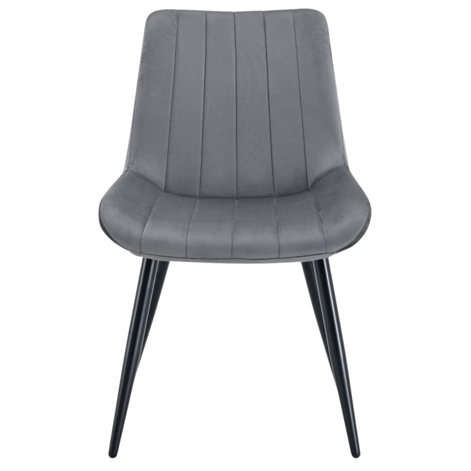 Rooted in the Latin name symbolizing olive trees and strength, the Livia Dining Chair blends dark grey velvet with sturdy black legs for a modern piece steeped in understated luxury.