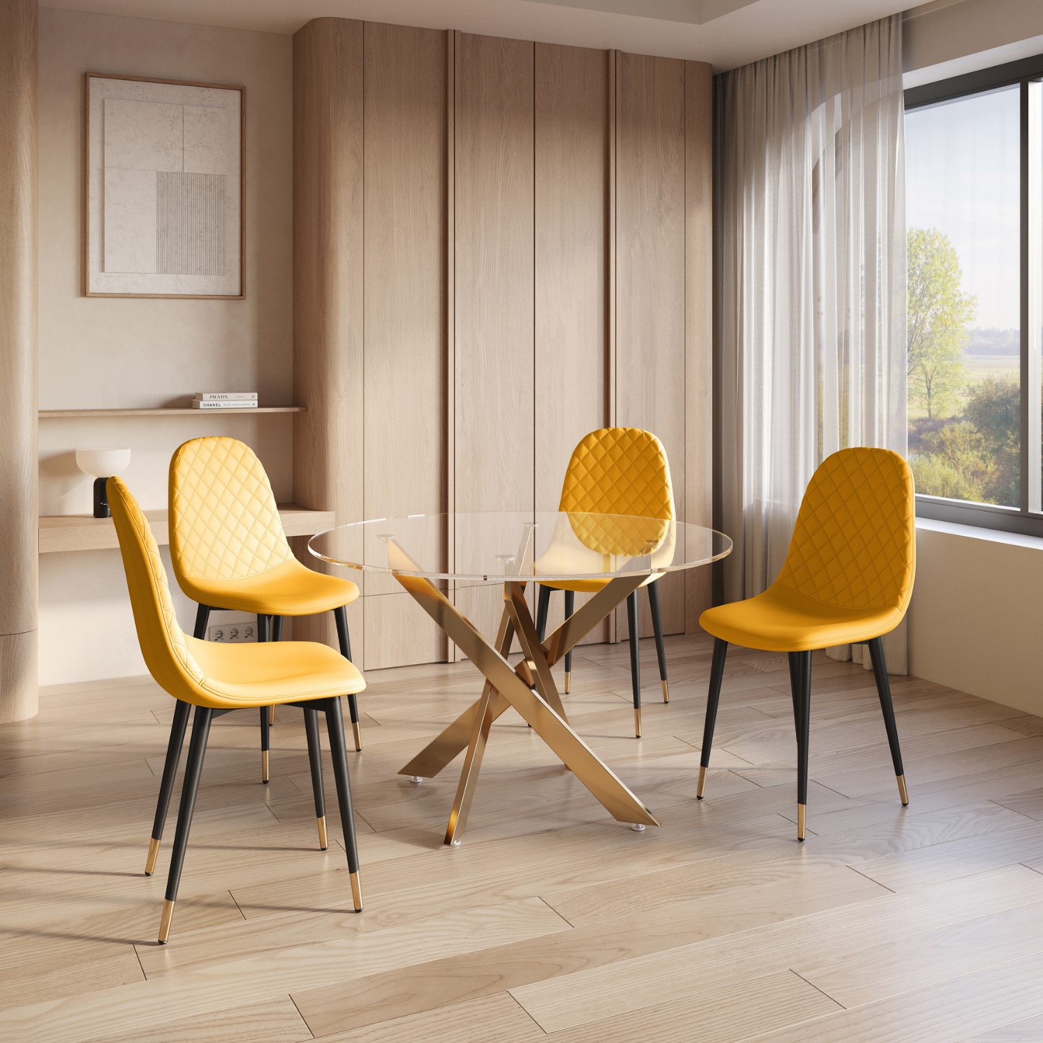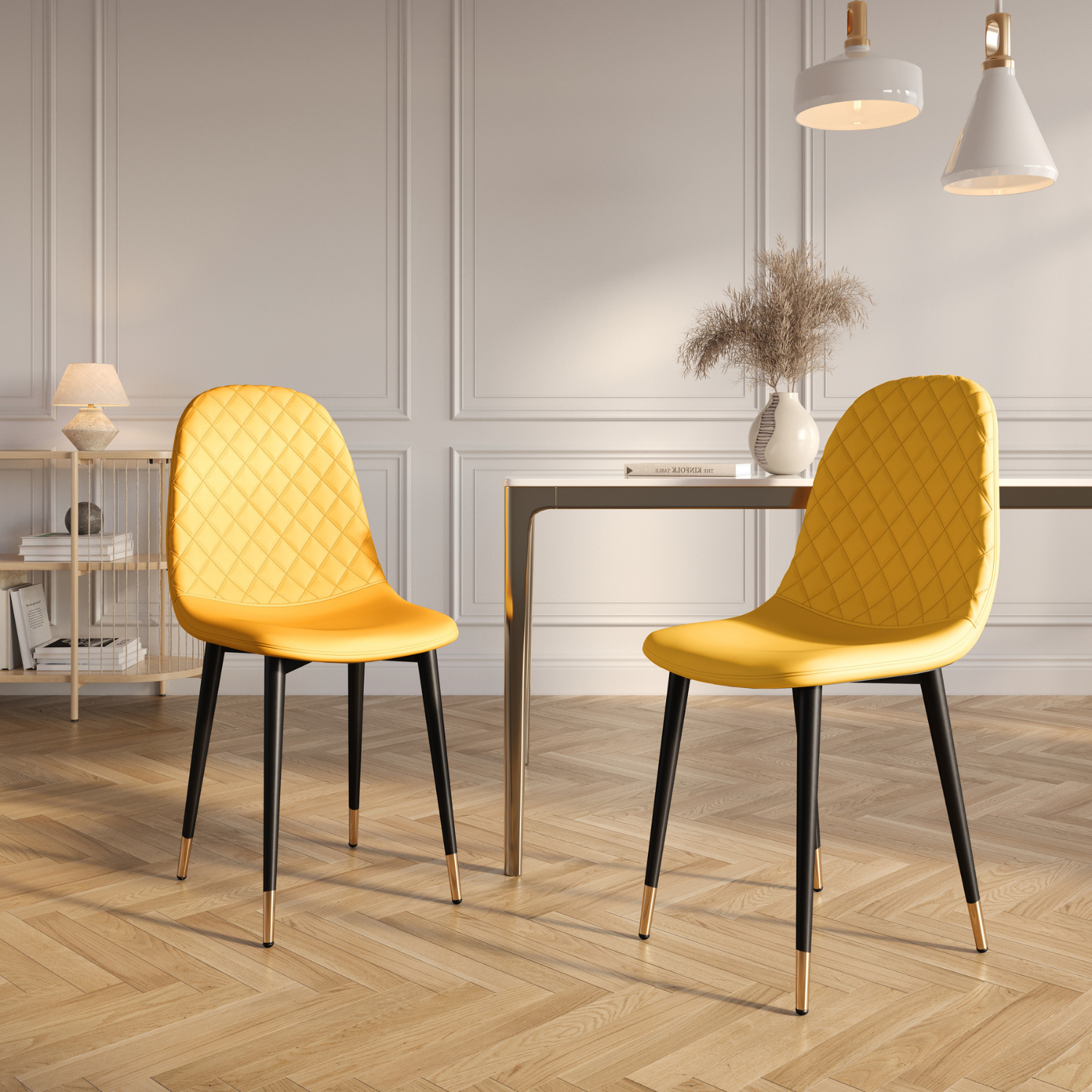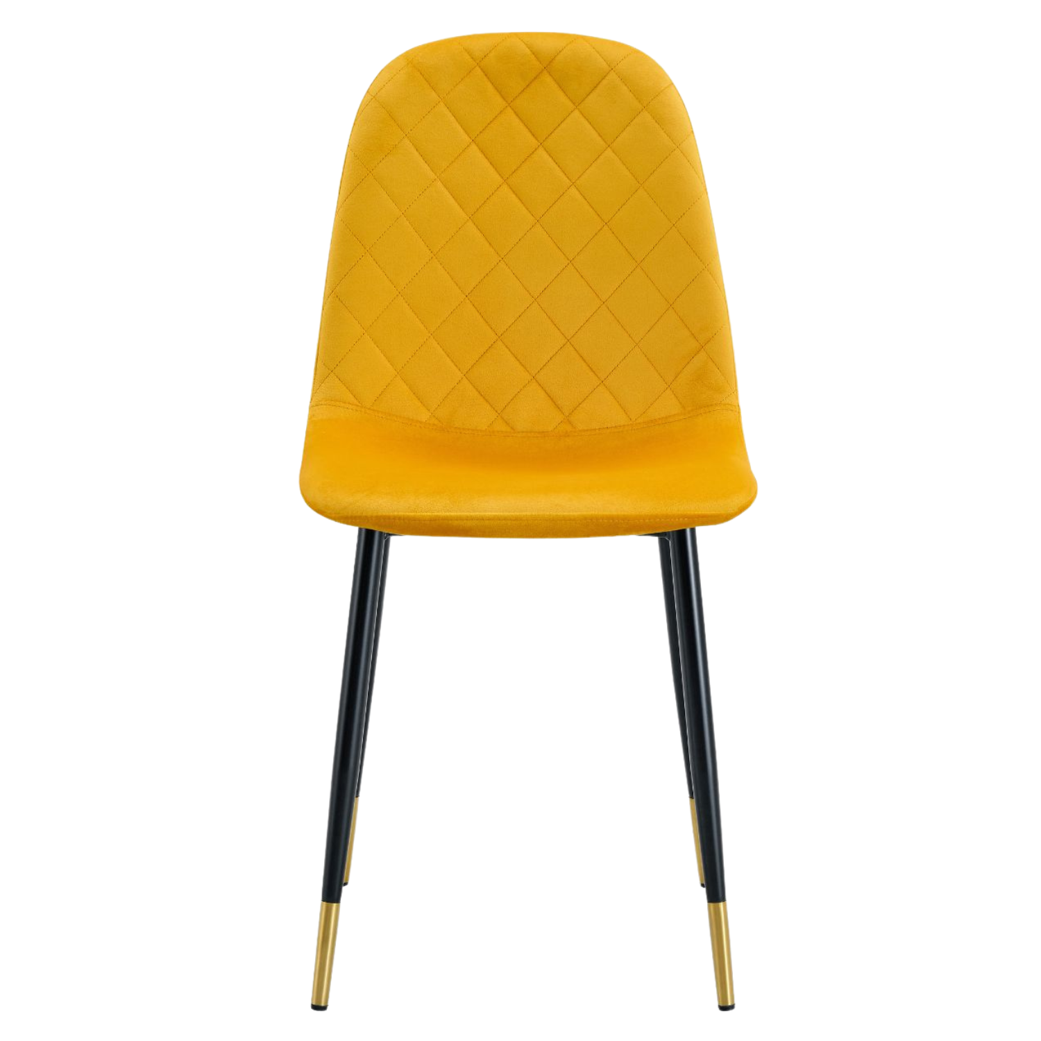 Channeling the Latin word for "light," the Lumen Dining Chair radiates bold sophistication. The vibrant yellow velvet paired with sleek black gold legs evokes a sense of warmth and modern luxury.