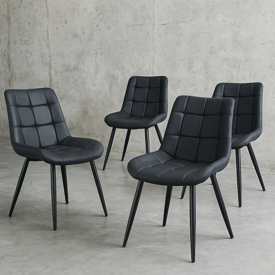 The Rusty Dining Chair Set delivers warm character with a contemporary twist. Wrapped in taupe velvet and grounded by sleek black legs, these four chairs offer a stylish, cohesive look that fits effortlessly into modern dining rooms. Perfect for creating a cozy, inviting atmosphere with a touch of rustic charm.