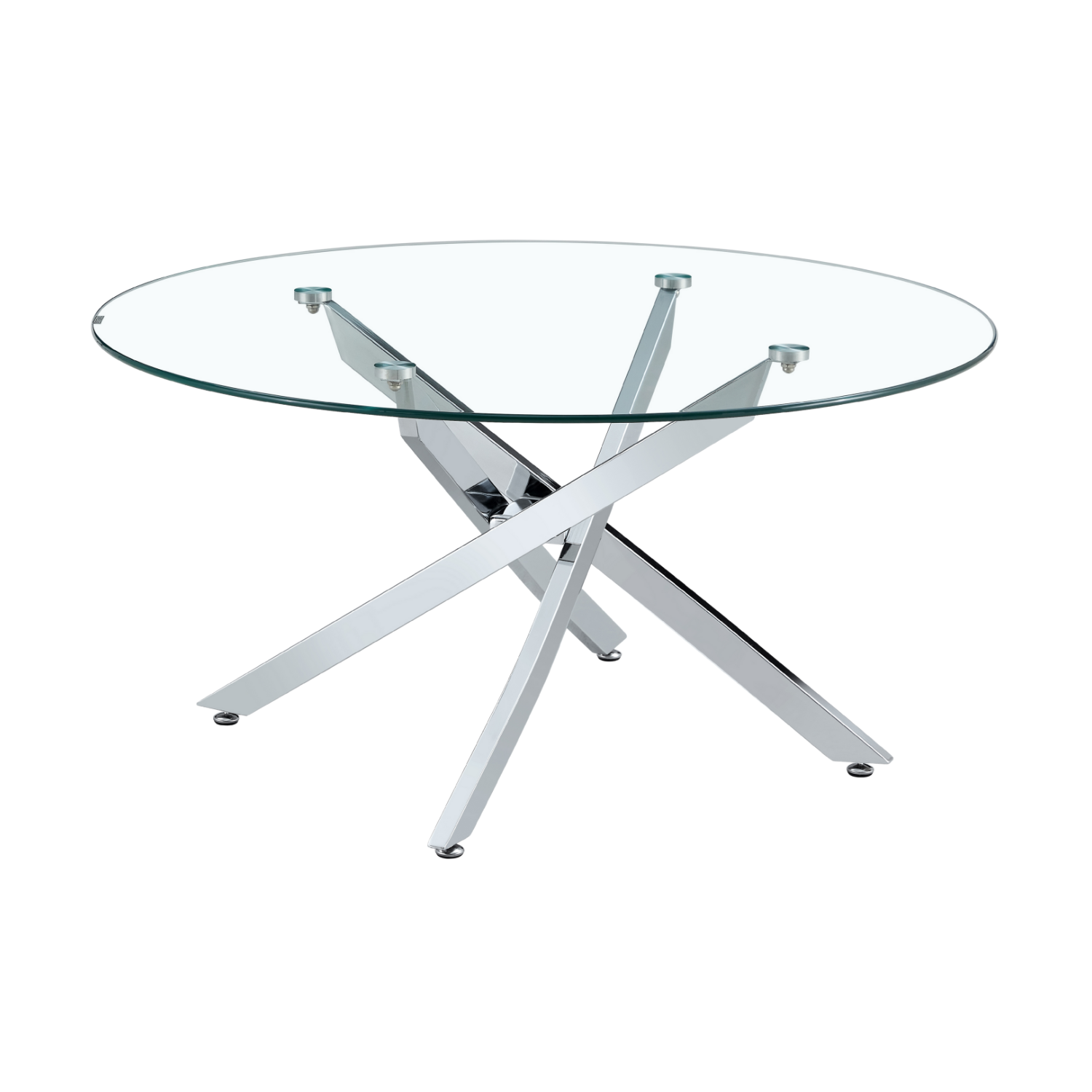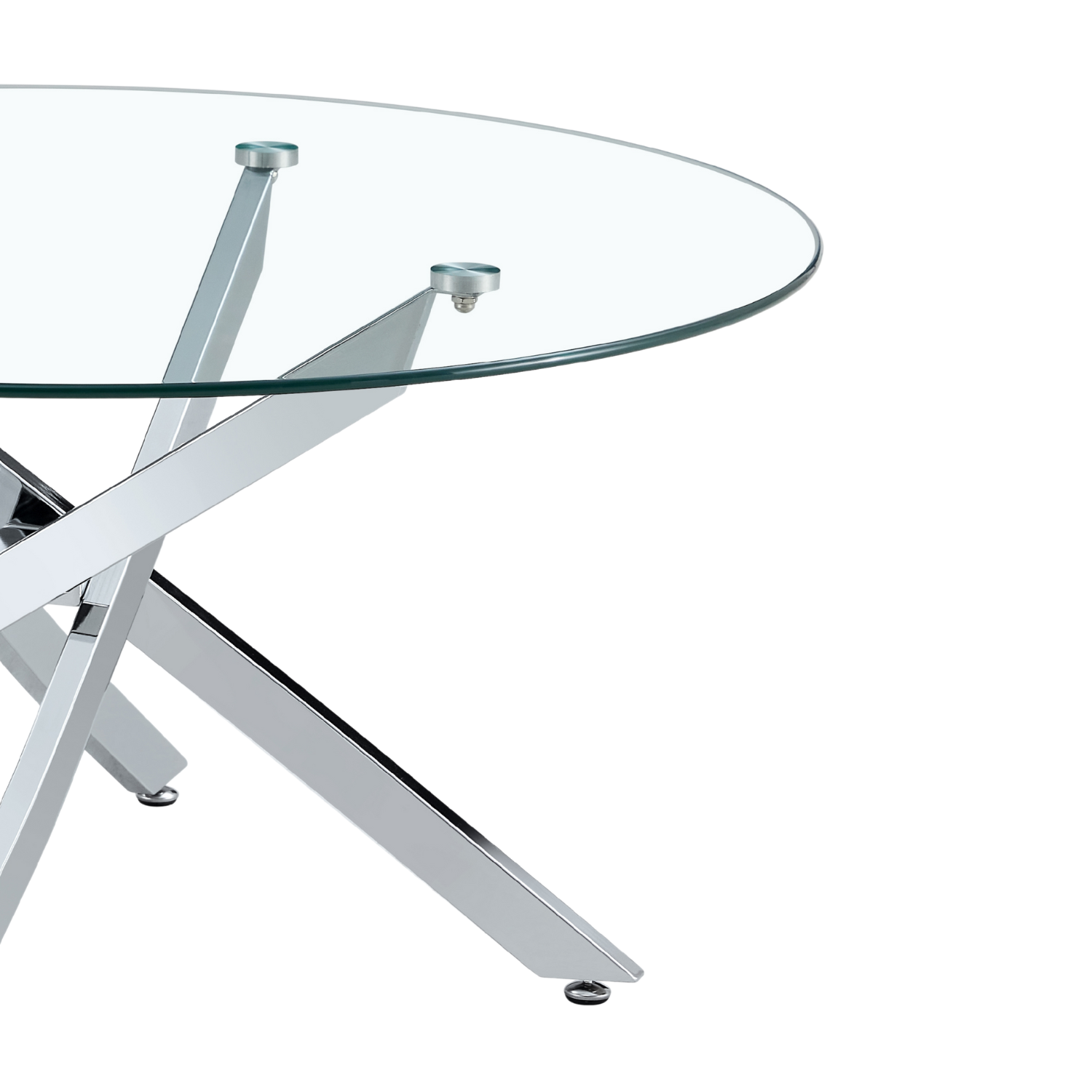 The Sabine Dining Table redefines modern sophistication. A clear glass top paired with chrome legs creates a strikingly contemporary design that blends elegance and functionality.